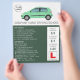 Flyer Coche verde moderno, escuela de conducción, instru