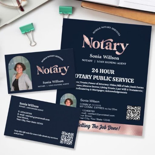 Un folleto de notario móvil moderno y elegante con tipografía de letra de caligrafía y pluma de ave con fondo de ágata. Ideal para notarios, profesionales, abogados, agentes de préstamos, agentes de hipotecas.... agregue su foto
