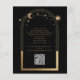 El Celestial Black Gold QR Code Quinceañera Invitation presenta un elegante sol dorado, luna y estrellas con un marco dorado sobre un fondo negro. Dentro está su información de invitación de personalizado Quinceañera. Al contrario, añada información adicional como su sitio web de Quinceañera y código QR. Personalice editando el texto en los cuadros de texto. Diseñado por Evco Studio www.zazzle.com/store/evcostudio