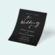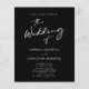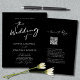 Invitación de boda negra con código QR todo en uno, elegante y moderna con caligrafía en blanco... Nuestra asequible invitación de boda minimalista negra y blanca presenta una caligrafía moderna combinada con texto serif y sans serif para una invitación de boda simple y elegante. La parte trasera de la invitación también muestra el código QR de su sitio web de boda, así como la URL del sitio web en sí, lo que permite a sus invitados responder en línea fácilmente y ver todos los detalles que normalmente se envían en un paquete de boda. El ejemplo de plantilla gráfica del código QR y todo el texto de ejemplo (aparte de los elementos gráficos de caligrafía) se pueden revisar fácilmente con su propia información en la plantilla de personalización. POR FAVOR, TOME NOTA: El papel para nuestra invitación de presupuesto más asequible es de 80 lb. de peso y el grosor del papel más utilizado para volantes de negocios y eventos. Su proveedor de suministros de oficina o tienda en línea podrá suministrar los sobres A6 para estas invitaciones. Nuestra Colección de Boda de Caligrafía Moderna y Elegante incluye una invitación de presupuesto con código QR de peso ligeramente más pesado, así como tarjetas plan