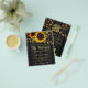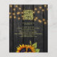 Celebración de boda campestre rústica y recepción elegante todo en una plantilla de invitación ECONOMICA con código QR al sitio web sobre fondo de madera de granero marrón oscuro con grandes ramos de girasoles amarillos dorados, hilos de luces centelleantes y una tipografía dorada falsa. +++++++++++++++ Fácil de personalizar con tus datos y código QR generado automáticamente para detalles y para responder en línea. ++++++++++++ La invitación es adecuada para bodas rústicas de campo al aire libre en jardines y patios traseros de graneros. +++++++++++++++++++++++++++++++++ POR FAVOR LEA ESTO ANTES DE COMPRAR. Esta es una tarjeta económica impresa en un VOLANTE. ++++ Tenga en cuenta que EL PAPEL ECONÓMICO ES DELGADO - Puede actualizar para que esta tarjeta se imprima en cartulina ++++ NO SE INCLUYEN SOBRES. +++ Verifique toda la información y ortografía de su texto porque recibirá exactamente lo que ve - nadie más verificará nada antes de imprimir. ++++ Esta tarjeta está diseñada para un tamaño de 4.5" x 5.6". En caso de que elija otro tamaño de tarjeta y el texto se salga de la página, todo deberá ser corregido antes de