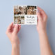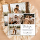 Presupuesto, Moderno, Elegante, Boda Leído A Mano (3) Tarjeta De Tres Collages de fotos Gracias. Elegante plantilla de tarjeta de agradecimiento boda con tres fotos en la parte delantera y una en la parte posterior. Con el texto "Gracias" en una letra de escritura tipográfica con letras a mano rápida con toques de color negro sobre fondo blanco. Poco corazón entre los nombres. Agrega tu nombre personalizado y mensaje de agradecimiento. Si prefiere escribir a mano la nota, simplemente elimine el texto de ejemplo para hacer más espacio.