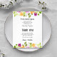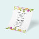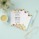 Los folletos de papel liviano de 4,5" x 5,6" de bajo coste presentan un borde de flores pequeñas moradas y naranjas con follaje verde y sus detalles en letras de moda en la parte delantera y violeta en la parte posterior. Este lugar es perfecto para colocar los platos en la cena de boda o en la recepción de bodas. COINCIDIENDO con los artículos de nuestra tienda.