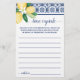 Lemons Blue Mediterranean Tile Time Capsule Game Card Bridal Shower. Cambiar el texto al diseño. Para cambios adicionales (color de fuente, estilo de fuente), haga clic en personalizar, desplácese hacia abajo y haga clic en el vínculo "Editar usando herramienta de diseño". **Comprobar la colección para todos los diseños coincidentes** CÓMO REPRODUCER: El invitado rellenará la tarjeta para compartir su mejor consejo, predicción para la pareja feliz