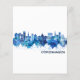 La silueta de acuarela azul de Copenhague, la capital de Dinamarca, se asienta en las islas costeras de Zealand y Amager