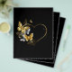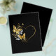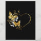 Marco dorado en forma de corazón, decorado con oro, joyas y mariposas blancas sobre fondo negro.