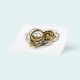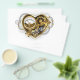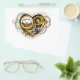 Corazón mecánico, volumétrico, de vapor punk con manómetro de presión, acero y engranajes dorados sobre fondo blanco. Estilo Steampunk.