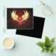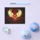 Corazón rojo brillante de un ángel con alas doradas brillando en el fondo rojo oscuro y radiante decorado con un patrón.