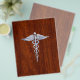El diseño simbólico cromado como símbolo médico de Caduceus presentado aquí en una decoración impresa de granos de madera de caoba. Las serpientes caduceus están diseñadas para parecer cromadas. Es bueno para una ocasión de graduación, una declaración para tu profesión, o para un regalo con esa apariencia médica que estás buscando.