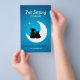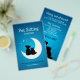 Plantilla de folleto publicitario para profesionales del cuidado de mascotas, cuidadores de mascotas, tiendas de mascotas, refugios o clínicas veterinarias con ilustración adorable (logotipo) de gato y perro en azul.