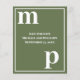 Un diseño minimalista sencillo y limpio en verde oliva moderno con un emparejamiento de texto de tipos de letra en negrita en monograma funda inferior y plantillas de tipos de letra en funda superior para los detalles que puede personalizar fácilmente. Simplemente cambie las letras por su propio derecho en la página del producto. Todos los elementos son totalmente personalizables.