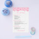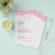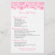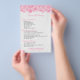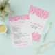 Elegante plantilla de folleto personalizable con tonos rosados florales de encaje sobre fondo blanco para lista de menú de servicios.