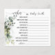 Greenery Eucalyptus Deseos por la tarjeta de juego de Recién nacido Baby Shower. Cambiar la redacción al diseño. Para una personalización adicional (color de fuente, estilo de fuente, eliminar o mover elementos), haga clic en personalizar, desplácese hacia abajo y haga clic en el vínculo "Editar usando herramienta de diseño". ** Comprobar la colección de todos los diseños coincidentes ** CÓMO REPRODUCIR: El invitado rellenará la tarjeta después de la redacción proporcionada para compartir sus mejores deseos para el Recién nacido