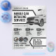 Diseño inspirado en la industria automotriz con gráficos de lavado y detalles de automóviles. Ideal para servicio de detallado de automóviles móvil, empresa de lavado de automóviles, tienda de limpieza de automóviles, profesionales del cuidado de automóviles. Incluye servicios y lista de precios con texto promocional para descuento, ofertas especiales y más. El logotipo existente en el diseño se puede utilizar o reemplazar con el deseado.