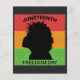 Ilustración de diseño del Día de la Libertad Juneteenth en colores rojo, amarillo y verde con un fondo texturizado con patrón de la bandera de Juneteenth y una gráfica de una niña afroamericana. Juneteenth, el verdadero día de la independencia o día de la libertad del pueblo negro afroamericano. Celebra la liberación y abolición de la esclavitud en Estados Unidos. El 19 de junio de 1865 es la fecha en que la noticia de la abolición de la esclavitud llegó a los estados de Texas. Idea de regalo perfecta para amigos, novio o novia, etc. Diseño perfecto para tarjeta de vacaciones, pegatina, taza, botones, pancarta, cartel, folleto o camiseta, etc.