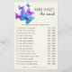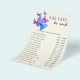 Presentamos nuestro juego de ducha de novia "He Said, She Said" - ¡Diversión chisporroteante por tu tema de "Le da mariposas"! Una ducha de novia debería estar llena de risas, alegría y momentos memorables. Nuestro juego de ducha de novia "He Said, She Said" es la adición perfecta a tu celebración, añadiendo un giro lúdico a tu tema de "Le da mariposas". El concepto del juego: "He Said, She Said" es un juego delicioso e interactivo que invita a los invitados a adivinar quién dijo qué cuando se trata de la pareja. Es una oportunidad para que la futura novia comparta historias y anécdotas sobre su relación, agregando un poco de diversión sentimental a la ducha de novias. Tema coincidente: Este juego complementa perfectamente el tema "Le da mariposas". Se trata de celebrar el amor y el viaje de la pareja, creando una experiencia agradable y memorable para sus invitados. Why's Perfect: Sentimental Laughter: Este juego anima a los huéspedes a compartir sus historias y recuerdos favoritos sobre la pareja, añadiendo un toque sentimental a la diversión. Entretenimiento Interactivo: Es una buena forma de atraer a los huéspedes y crear una atmósfera de risa y unión durante la ducha nupcial. Tema coincidente: "He Said, She Said" coincide armoniosamente con el tema "Él da sus mariposas", asegurando que tu ducha de novia esté llena de la misma blancura y encanto. Este juego de ducha de novia "He Said, She Said" es más que una actividad; es una oportunidad para relacionarse con la futura novia y crear recuerdos duraderos. Ya sea que esté celebrando en un jardín, en una casa acogedora o en cualquier otro lugar, este juego seguro añadirá una capa de diversión y sentimiento a su ducha de novia. Eleva tu experiencia de ducha de novias con este juego atractivo e infunde tu celebración con risas, amor e historias conmovedoras. Pida la tuya hoy mismo, y mira a tus invitados pasarla bien recordando a la pareja, añadiendo una capa adicional de encanto a tu día especial. Su ducha de novia será recordada por su encantador tema y la diversión sentimental creada por este juego delicioso.