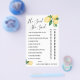 Flyer Dijo que dijo que Lemon Bridal Shower Game Card