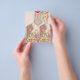 El diseño parece ser un diseño textil, posiblemente para tela o papel pintado. Aquí hay una descripción detallada: ・ Esquema de color: El diseño presenta una rica combinación de rojo, verde y morado sobre un fondo beige. ・ Motivos: La parte central del patrón tiene una gran forma de paisajes rellena de elementos decorativos más pequeños, rodeados de flores y hojas. ・ Frontera: La frontera consiste en alternar formas más grandes de paisajes y arreglos florales, todo ello siguiendo un diseño simétrico. Este diseño intrincado y vibrante es característico de los patrones textiles tradicionales. Se podría usar en varias aplicaciones como ropa, decoración doméstica o accesorios.