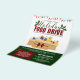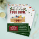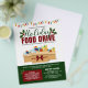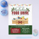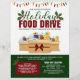 Volante de donación de comida para fiestas que impulsa la caridad con luces ilustrativas de Navidades, caja de cartón llena de donaciones de comida, mistletos, tipografía elegante y tonos de colores de vacaciones audaces.