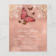 Las Invitaciones de Ducha de Novia Floral Mariposa Dorado Rosa Presupuesto presentan un fondo brillante dorado rosa acentuado con mariposas y adornos florales ornamentados con la información de su invitación de ducha de novia en el centro. Personalice editando el texto en las casillas de texto. Diseñado para usted por ©Evco Studio www.zazzle.com/store/evcostudio
