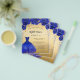 Tenga en cuenta que esta invitación está en papel de volante y es muy delgada. Los sobres no están incluidos. Para invitaciones más gruesas (el mismo diseño) visite nuestra tienda. Una invitación moderna, elegante y glamurosa para una fiesta de 16 y 16 años. Un fondo dorado falso con brillantes azules falsos y un vestido azul real y rosas, flores. El nombre está escrito con una escritura de estilo con letras a mano moderna. Personalice y agregue los detalles de su fiesta.