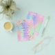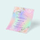 Tenga en cuenta que esta invitación está en papel de volante y es muy delgada. Los sobres no están incluidos. Para invitaciones más gruesas (el mismo diseño) visite nuestra tienda. Invitación a una fiesta de cumpleaños 16 y 16 mujeres. En el frente: fondo de color arcoiris y holográfico en color morado, rosa, verde menta, oro rosa. Decorada con purpurinas falsos de color rosa oscuro, chispas. Personalice y agregue un nombre y detalles del fiesta. El nombre está escrito con un guión de estilo con letras a mano, letras de color púrpura.