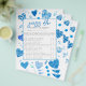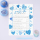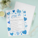 Diseñado para coordinar con nuestras invitaciones para baby shower 'Sweetheart'. Este divertido juego de 'Adivina quién' para baby shower, presenta ilustraciones de acuarela de una variedad de corazones con patrones en tonos azules. Cada pregunta se puede editar, ¡así que puedes cambiarlas si lo deseas! Todo el texto se puede personalizar utilizando la plantilla proporcionada, los estilos de fuente y el color de fondo también se pueden cambiar haciendo clic en el enlace personalizar más después de personalizar. ¡Diviértete y adivina!