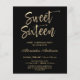 Sweet 16 Gold y Black Modern and Elegant Brushed Metallic Sweet Dieciséis Invitación de fiesta de cumpleaños. Esta dulce invitación de dieciséis es perfecta para la Girly Girl que busca celebrar en Luxury Gold. Si necesita elementos coincidentes adicionales, póngase en contacto con el diseñador.