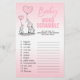 Entretenga a sus invitados con estas hermosas tarjetas de juego de baby shower con tema de elefante; ROMPECABEZAS DE PALABRAS. Mamá elefante de dibujos animados y bebé elefante con globos en forma de corazón; colores rosa y blanco. Perfecto para una fiesta de bebé niña. ¡Obtenga artículos coincidentes!