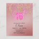 El glamour de las bonitos es la esencia de esta falsa invitación a la fiesta de cumpleaños de las niñas de Relieve metalizado rosa y purpurina dorado dulce de 16 años. Los campos de plantilla de texto en ambos lados permiten incluir RSVp, Registro de regalo y cualquier otro detalle de evento de fiesta dulce16 según sea necesario.