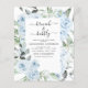 Rosas de flores azules y eucalipto de agua de verdor botánico primavera o verano Boda brunch y bubbly champagne Bridal Shower Invitaciones - incluye hermosa y elegante tipografía de escritura con flores botánicas tropicales modernas y vegetación para la celebración especial de Novia a Ser.