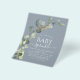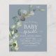 Presupuesto Dusty Blue Eucalyptus Greenery Suculento Watercolor Botánico Primavera Género Neutral Niño Niño o Niña Bebé Sprinkle Invitaciones a la ducha sobre fondo blanco - incluye hermosa y elegante tipografía de escritura con hojas botánicas modernas y vegetación para la celebración especial de la Madre a Ser.