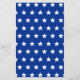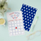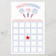 El 4 de julio, petardos y fuegos artificiales, tarjeta de juego de bingo con ducha de bebé en blanco y azul rojo. En la parte posterior se muestra un patrón de estrellas blancas en azul.