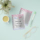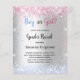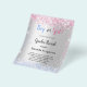 Tenga en cuenta que esta invitación está en papel de volante y es muy delgada. Los sobres no están incluidos. Para invitaciones más gruesas (el mismo diseño) visite nuestra tienda. Un fondo falso plateado. Decorada con purpurinas rosas y azules claros, brillantes. Personalice y agregue un nombre y detalles del fiesta.