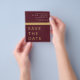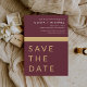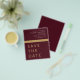 Boda de presupuesto Elegant Burgundy y Gold Salven las tarjetas de fecha. Las tarjetas Save the Date contienen una moderna tipografía de escritura cursiva con letras a mano que son elegantes, simples y modernas para usar después de la minimalista celebración del día de la boda.