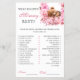 ¿Qué tan bien conoces a la futura madre? Esta divertida tarjeta de juego para la ducha de bebé cuenta con un oso dormido de ensueño rodeado de suaves flores rosadas, que le dan un toque dulce a la celebración. A los invitados les encantará contestar preguntas divertidas acerca de mamá, ¡que empiecen las risas (y sorpresas)!