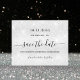 Por favor, tenga en cuenta que esto ahorra que la fecha está en papel de volante y muy delgada. Los sobres no están incluidos. Para tarjetas más gruesas (el mismo diseño) por favor visite nuestra tienda A girly and trendy Save the Date para una Quinceañera, fiesta de cumpleaños número 15. Un moderno fondo de aspecto metálico de imitación plateada decorado con un polvo falso purpurina. Personalice y agregue una fecha y un nombre/edad. El texto: Save the Date se escribe con un gran guión de estilo escrito a mano.