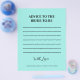 Capture heartfelt wishes and timeless wisdom with our Elegant Bridal Shower Teal “Advice to the Bride” Note Template. Perfect for bridal showers, this customizable template lets guests share their advice, encouragement, and best wishes for the bride-to-be. A thoughtful and interactive keepsake, these notes create lasting memories that the bride can treasure for years to come. Beautifully designed in a sophisticated teal color, this template complements any bridal shower theme while adding a personal touch to the celebration.
