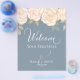 Este diseño presenta su asiento, elegante bienvenida, escritura moderna de vegetación, tablero de bodas con mesa de cartel, caligrafía romántica minimalista k023, vegetación botánica elegante y moderna, color de agua verde moda moderna, con una tipografía elegante y moderna y caprichosa, una caligrafía sencilla, moderna y elegante, primavera verano otoño invierno, moda moderna, jardín floral rosa polvoriento azul