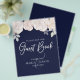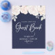 Este diseño cuenta con un elegante y moderno letrero de libro de visitas, carteles de la recepción de bodas, un romántico jardín moderno k023, follaje verde acuático botánico, elegante y moderno, caligrafía sencilla, perfecta para el verano de primavera, un arreglo moderno de moda, un guion rosa, caligrafía capilar tipográfica, flores modernas de moda rubor, signos bodas imprimibles azul marino