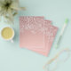 Este lujoso y elegante encaje blanco, llamativos puntos de confeti, flores, puntos, remolinos, geométricos, tribales, de estilo mehndi, imagen floral inspirada en henna, sobre un fondo degradado de color dorado subió, ambiente alegre, femenino, moda, caprichoso, de ensueño y elegancia, es perfecto para el uso diario, decoración en casa, celebraciones y ocasiones especiales.
