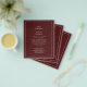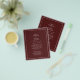 NOTA: Esta es una opción de papel para volantes de bajo presupuesto. SATIN es el acabado más grueso aquí, mate es como papel. Los sobres NO están incluidos. Para ver los pesos y tamaños de papel de invitación más tradicionales, consulte la colección adjunta o transfiera el diseño a través de las herramientas en la página de su producto a 'invitación'. Un elemento de boda monocromo rojo burgundy profundo bilingüe con un estilo de tipografía de moda y muchos campos de plantilla en ambos lados para crear su propio diseño de invitación de boda bilingüe único y personalizado. Para obtener asistencia, acceda al DISEÑADOR EN VIVO GRATUITO de Zazzle o utilice las herramientas de TRANSFERENCIA en la página.⭐Por favor, consulte la colección adjunta y los 'productos adicionales' para ver el conjunto de boda completo con este diseño o tema de color. Esto puede incluir invitaciones de boda y ducha de novia, invitaciones para la cena de ensayo, invitaciones para el almuerzo de las damas de honor, junto con guardar la fecha, rsvp's, etiquetas de favor, pegatinas y mucho más. Adecuado para bodas de primavera, verano, otoño, invierno, al aire libre o en interiores, montaña, lago, granero, campo, castillo, jardín, patio trasero. Toneladas de grandes diseños y opciones para todos los presupuestos.