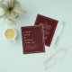 NOTA ⭐: Esta es una opción de papel de volante de bajo presupuesto. SATIN es el final más grueso aquí, matt es como el papel. Sobres NO incluidos. Para pesos y tamaños de papel de invitación más tradicionales, vea la colección adjunta o transfiera el diseño a través de las herramientas de su página de productos a 'invitación'. ⭐ elemento boda burdeos en rojo profundo con estilo tipográfico trending y muchos campos de plantilla para crear su propio diseño único personalizado. Para acceder a la ayuda, el DISEÑADOR EN VIVO GRATUITO de Zazzle o utilice las herramientas TRANSFER de la página. ⭐ Consulte la colección adjunta y los "productos adicionales" para ver la suite boda completa con este diseño o tema de color. Esto puede incluir invitaciones a bodas y duchas de novias, invitaciones a cenas de ensayo, invitaciones a almuerzos para novias junto con la fecha de guardar, rsvp, etiquetas de favores, pegatinas y mucho más. Adecuado para primavera, verano, otoño, otoño, bodas de invierno, interiores o exteriores, montaña, lago, granero, campo, castillo, jardín, patio trasero. Toneladas de grandes diseños y opciones para todos los presupuestos. ⭐ Diseño de plantilla ©LeahG Fundador de LowBudgetWeddingNetwork® Para consejos de planificación de bodas, visite www.weddingdesignchic.com. Aquí podrá acceder a las ideas sobre cómo planear su boda de novias de bajo presupuesto perfecto, imprimir listas de verificación gratuitas para bodas y descargar una guía de planificación de bodas imprimible.