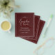 NOTA ⭐: Esta es una opción de papel de volante de bajo presupuesto. SATIN es el final más grueso aquí, matt es como el papel. Sobres NO incluidos. Para pesos y tamaños de papel de invitación más tradicionales, vea la colección adjunta o transfiera el diseño a través de las herramientas de su página de productos a 'invitación'. ⭐ elemento boda burdeos en rojo profundo con estilo tipográfico trending y muchos campos de plantilla para crear su propio diseño único personalizado. Para acceder a la ayuda, el DISEÑADOR EN VIVO GRATUITO de Zazzle o utilice las herramientas TRANSFER de la página. ⭐ Consulte la colección adjunta y los "productos adicionales" para ver la suite boda completa con este diseño o tema de color. Esto puede incluir invitaciones a bodas y duchas de novias, invitaciones a cenas de ensayo, invitaciones a almuerzos para novias junto con la fecha de guardar, rsvp, etiquetas de favores, pegatinas y mucho más. Adecuado para primavera, verano, otoño, otoño, bodas de invierno, interiores o exteriores, montaña, lago, granero, campo, castillo, jardín, patio trasero. Toneladas de grandes diseños y opciones para todos los presupuestos. ⭐ Diseño de plantilla ©LeahG Fundador de LowBudgetWeddingNetwork® Para consejos de planificación de bodas, visite www.weddingdesignchic.com. Aquí podrá acceder a las ideas sobre cómo planear su boda de novias de bajo presupuesto perfecto, imprimir listas de verificación gratuitas para bodas y descargar una guía de planificación de bodas imprimible.