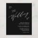 Elegante Guión Blanco y Negro Moderno Todo En Un Viajero De Invitación A La Boda Minimalista amigable con el presupuesto. Todos los textos están preorganizados para que puedas personalizarlos fácil y rápidamente con tus propios detalles. (Tenga en cuenta que NO SE INCLUYEN ENVELOPES. Se trata de un volante de papel delgado y de valor Matte versión no recubierta (también disponible para una opción para seleccionar papel recubierto). Las dimensiones de este volante son de 4,5" x 5,6" y encajan bien en los sobres estándar de tamaño A6. Visita nuestra tienda para actualizarte para un papel más grueso y para muchas otras opciones de tarjetas hermosas.