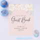 Este diseño cuenta con un elegante y moderno letrero de libro de visitas, carteles de la recepción de bodas, un romántico jardín moderno k023, follaje verde acuático botánico, elegante y moderno, caligrafía sencilla, perfecta para el verano de primavera, un arreglo moderno de moda, escritura de tipografía caligráfica, flores modernas de moda rubor, signos bodas imprimibles de color rosa