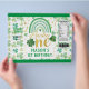 [TODO el texto es EDITABLE, excepto el de la suerte] Tema: el arcoiris del Día de San Patricio. Ocasiones: Fiesta por el cumpleaños del niño. Estilo: Agradable, Elegante, Boho. Colores: Verde, Oro, Blanco. Gráficos: Arcoiris, acuarela, falso oro.