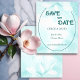 La Flor de Magnolia etérea Save the Date presenta una delicada flor de magnolia sobre un fondo abstracto a la misma sombra. La Magnolia simboliza la suerte y la estabilidad y deleita a la gente con sus flores de principios a mediados de primavera. En el este, las flores de la magnolia representan nobleza y pureza. Perfecto para un evento de primavera o verano. Personalizar con tus propios detalles. Para una mayor personalización, haga clic en el enlace "Personalizar" y utilice nuestra herramienta de diseño para modificar esta plantilla. También está disponible en champán y rosa.