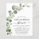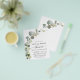 Boda de primavera de agua botánica de suculento presupuesto Eucalyptus Green Wedding Virtual Bridal Shower Invitaciones sobre fondo blanco - incluye hermosa y elegante tipografía de escritura con hojas botánicas modernas y vegetación para la celebración especial de Novia a Ser.