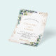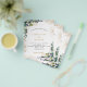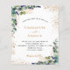 Tenga en cuenta que esta invitación está en papel de volante y es muy delgada. Los sobres no están incluidos. Para invitaciones más gruesas (el mismo diseño) visite nuestra tienda. Un fondo blanco decorado con vegetación eucaliptos y follaje dorado. Personalice y agregue sus nombres y detalles del boda. Letras de color negro y dorado. Atrás: agrega tu weburl a tu sitio web boda para obtener información sobre RSVP o detalles.